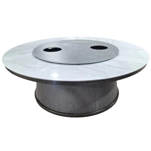 高档十六人大理石电动餐桌转盘带电磁炉火锅桌图